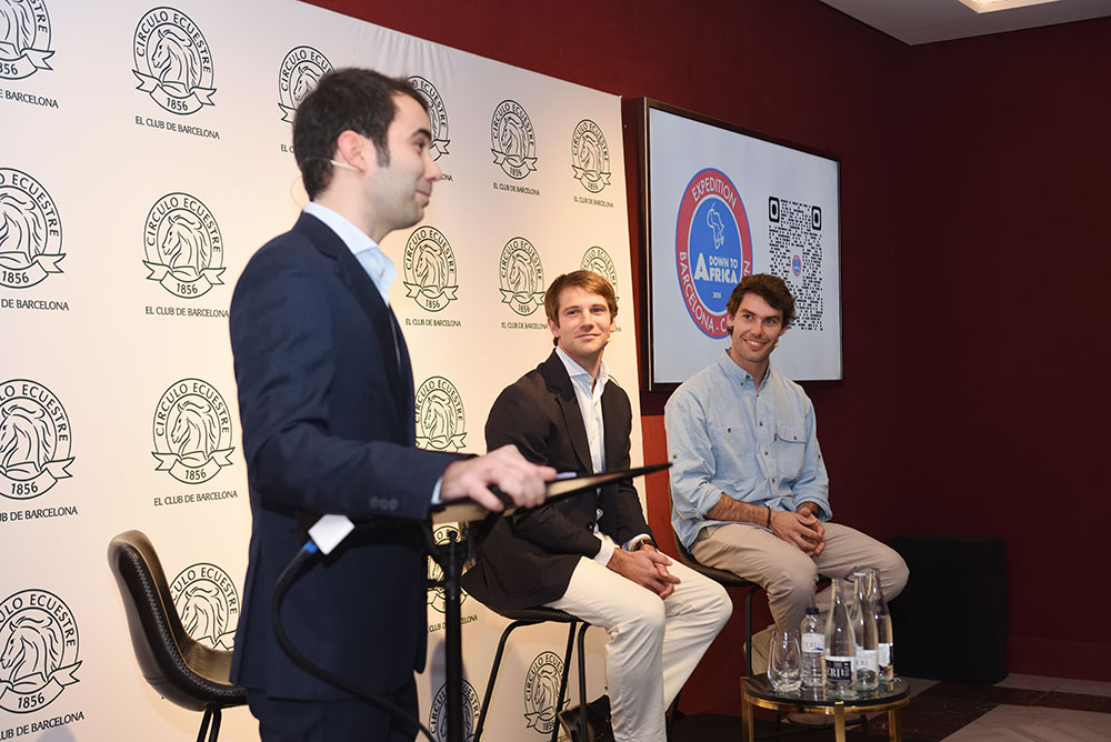 El Círculo Ecuestre ha acogido este jueves la conferencia Down To Africa, una sesión organizada junto al Comité de Jóvenes que ha reunido a Álex Costa y Lucas Poch, dos de los tres integrantes del proyecto nacido en Barcelona que ha convertido un sueño personal en una operación ejecutada con mentalidad empresarial: 90 días recorriendo África en moto, con más de 23.000 kilómetros y cerca de 20 países atravesados. El acto ha sido presentado por Santiago García-Mussons, miembro del Subcomité Económico del Comité de Jóvenes del Círculo Ecuestre, que ha introducido el encuentro con un vídeo resumen del viaje y ha conducido un coloquio centrado en la experiencia, la logística y la construcción del proyecto.